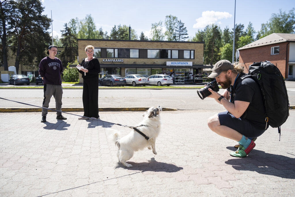 Ensimmäisen Kouvolan Sanomat -keikkani haastattelu alkaa lähes välittömästi, kun pääsemme sisään Kouvolan Hansakeskuksessa sijaitsevaan Blanco-parturiliikkeeseen. Valokuvaaja Lukas Pearsall on jo saapunut paikalle virittelemään 360-kameransa paikoilleen ja kytkee sen nyt nauhoittamaan.