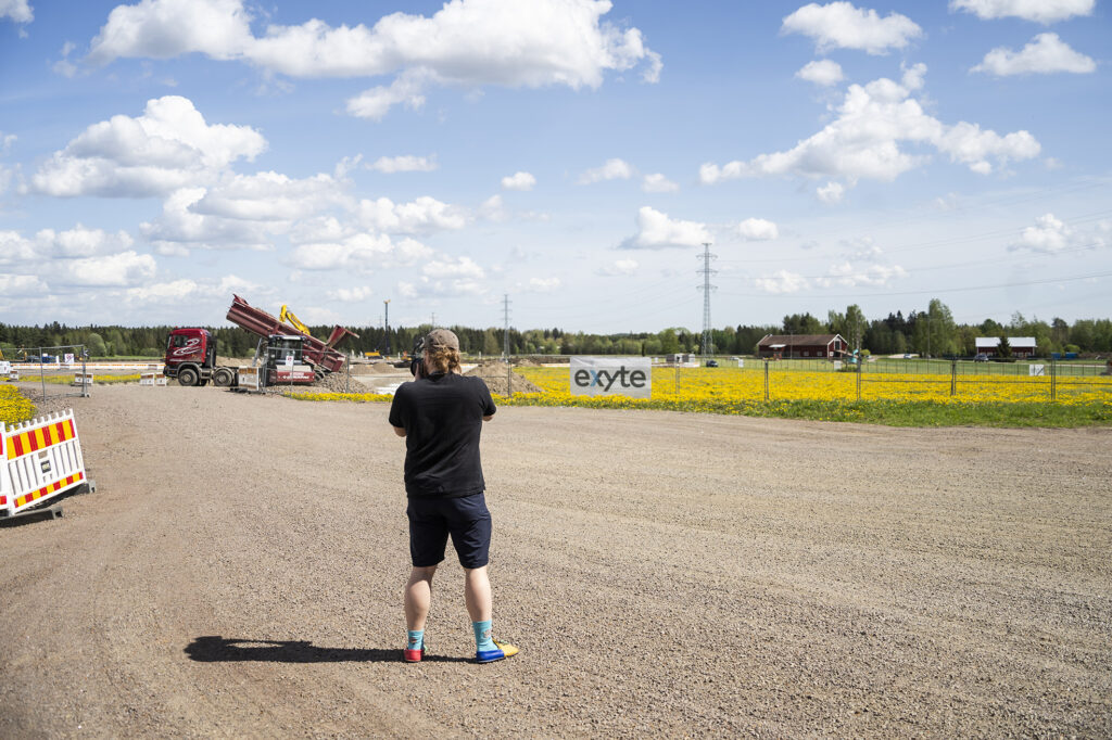 Elimäen-keikka hoituu nopeasti. Paluumatkalla poikkeamme kuvaamaan rakennustyömaata, johon on nousemassa kiinalaisen somejätin Tiktokin datakeskushalli.