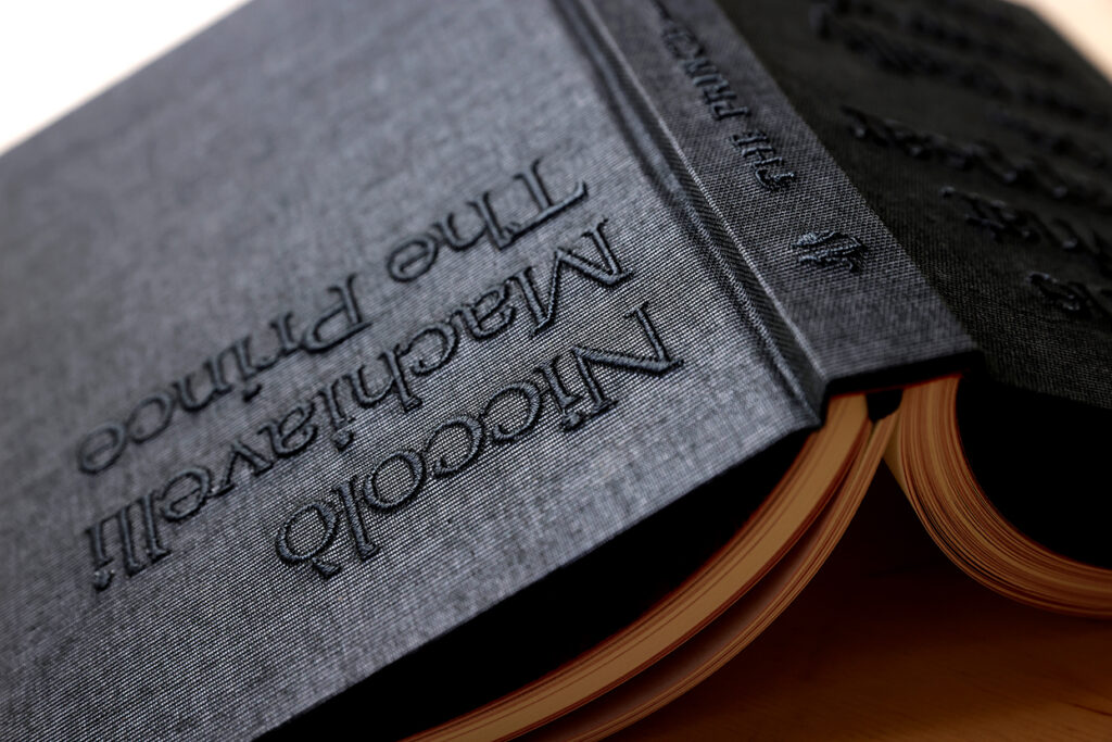 Anna-Mari Tenhunen suunnitteli ulkoasun Niccolò Machiavellin klassikkoteokseen The Prince (Ruhtinas) viime vuonna. Siinä hän hoksasi käyttää brodeerattua nimiötä ja takakansitekstiä.