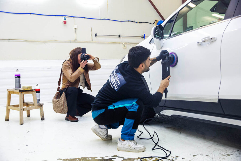 På biltvätten har företagaren ­Azamifar Kamaran, ensam anställd, fullt upp. Han avbryter vaxningen av en vit bil en stund för att svara på Johanssons frågor.