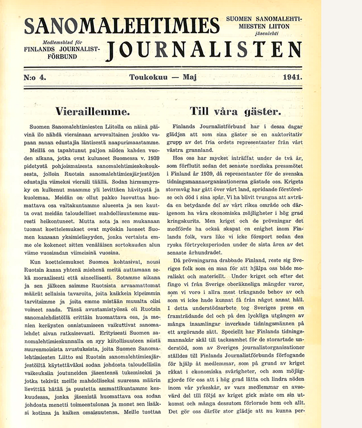 Näin valotti Matti Klemola toimittajien heikkoa oikeudellista asemaa Sanomalehtimiehessä 4/1941. Useimmilla aloilla työntekijän ja työnantajan suhdetta oli tuolloinkin laein ja sopimuksin säädelty, mutta toimittajat eivät olleet kokeneet tarvetta ”joukkosopimuksiin”.