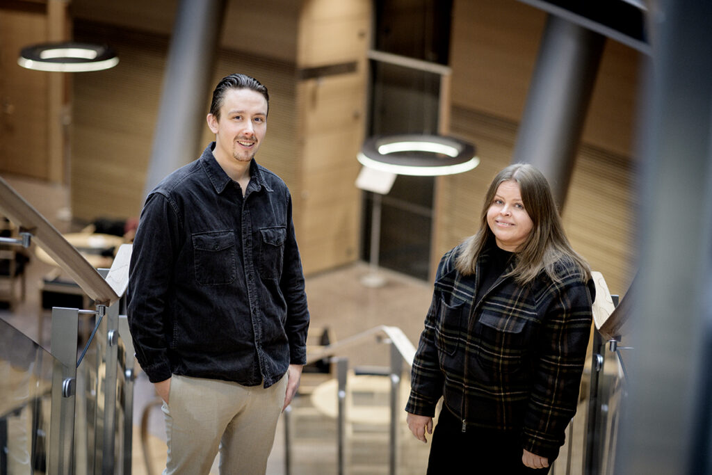 Emtö och Sirén har varit ackrediterade i riksdagen sedan september 2024. I Lilla parlamentets cafeteria är det tyst på grund av riksdagens julpaus.