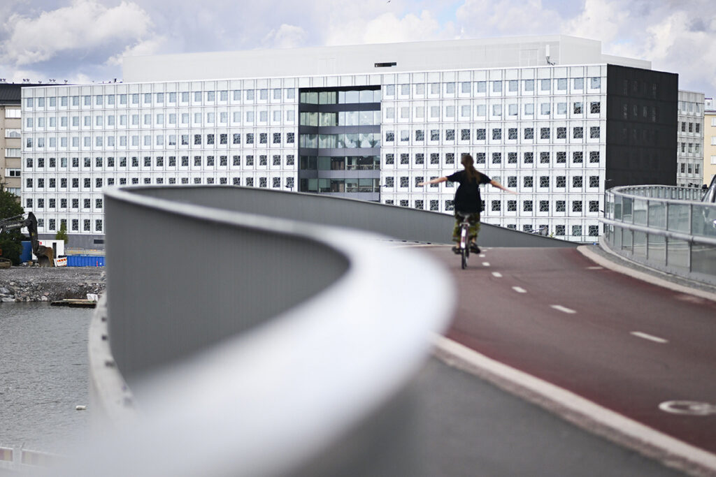Stig kuvasi Opetushallitusta muun muassa Siltavuorensalmen toisella puolella sijaitsevan Kruununhaan puolelta. Hakaniemensillalla hän pysähtyi toivoen, että ohi ajaisi pyöräilijä. Toive toteutui pian.