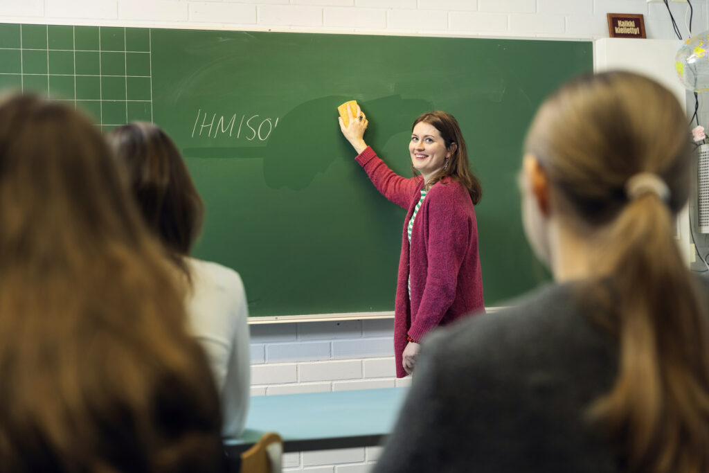 Eveliina Portnoj haluaa pysyä media-alalla, mutta työskentelee säännöllisesti myös opettajana. Yksi hänen työpaikoistaan on Kaarinan Littoisissa sijaitseva Kotimäen koulu.