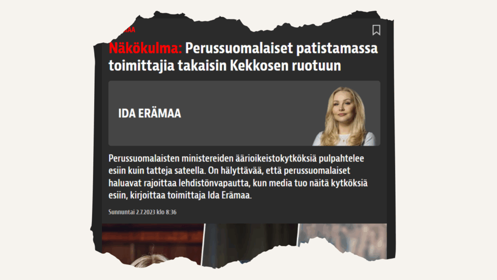 Erämaahan kohdistui poikkeukselliset mittasuhteet saanut julkinen myllytys hänen kirjoittamansa, perussuomalaisten mediasuhdetta käsitelleen kolumninsa takia. Iltalehti julkaisi kolumnin 2. heinäkuuta 2023.