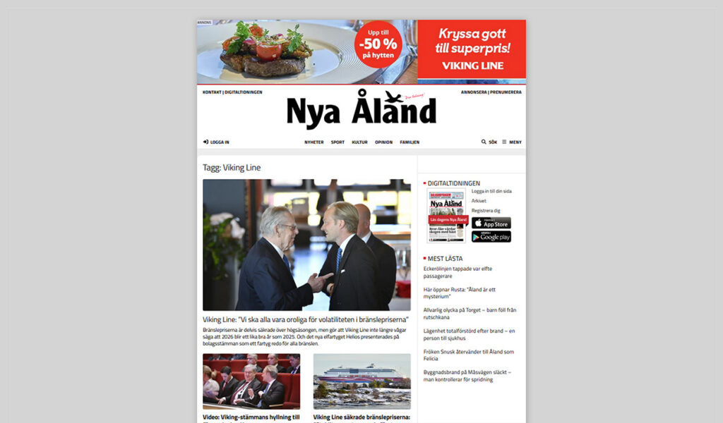 Viking Line återgår till att annonsera i tidningen Nya Åland efter en paus på nästan tre år. Rederiet avbokade all annonsering i juni 2023 efter att tidningens ledarspalt diskuterade bland annat tax free-modellens hållbarhet. Viking Lines vd Jan Hanses ville inte kommentera saken, men menade att tidningen ”får dra sina egna slutsatser” om huruvida avbokningen hängde ihop med den kritiska ledartexten. Senare gav Hanses ett skriftligt svar till Svenska Yle, där han lät förstå att det fanns en koppling mellan Nyans journalistik och indragningen av annonserna.